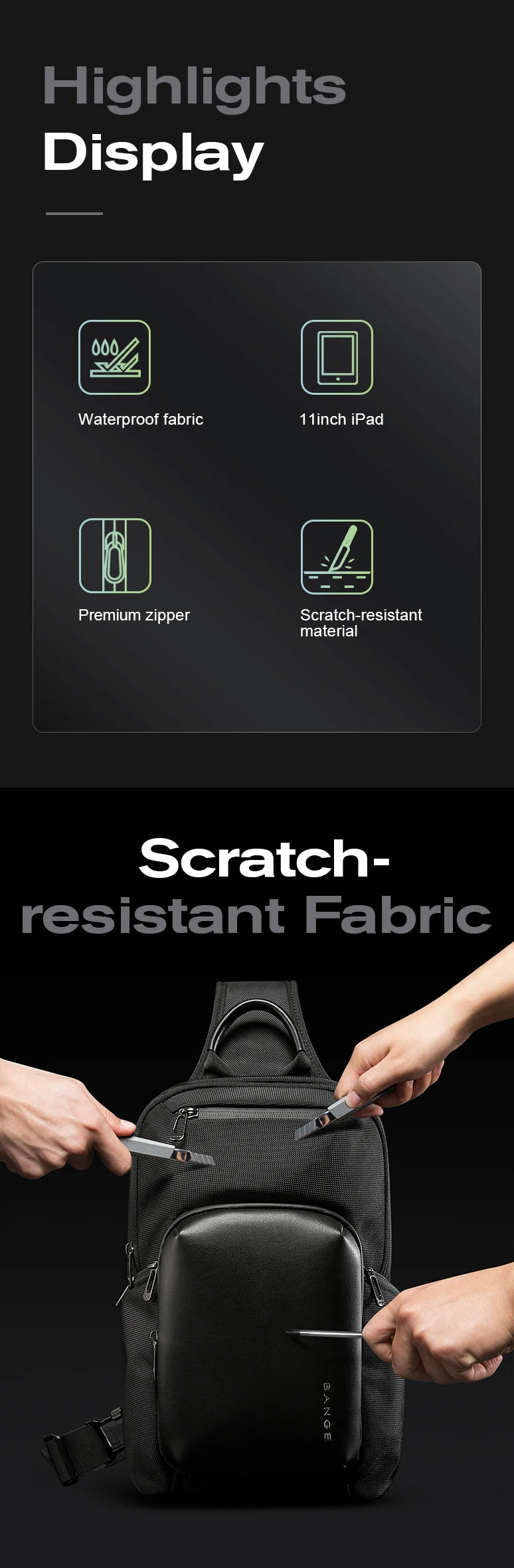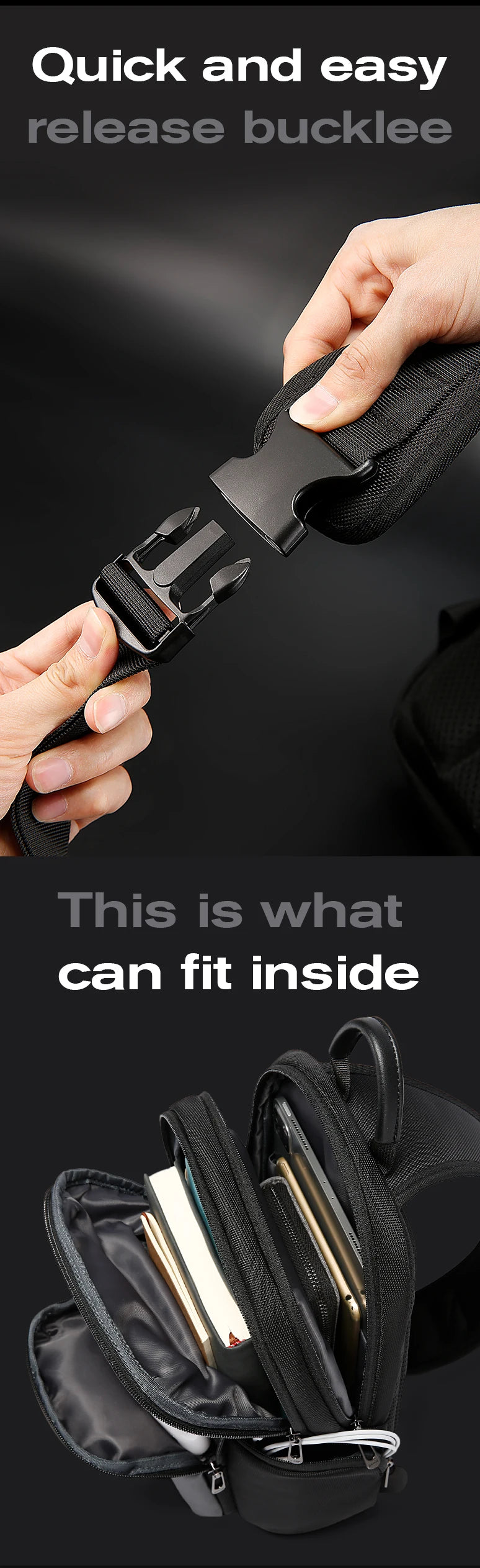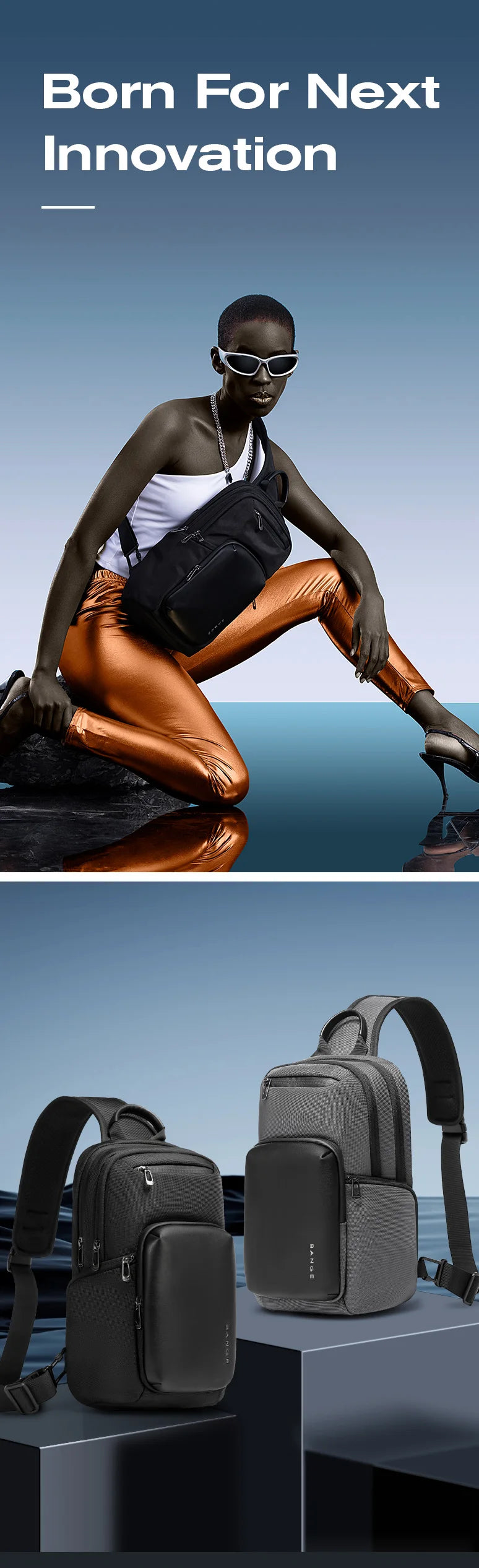 BANGE 2024 New Arrival Multifunction Crossbody Bag for Men Shoulder Messenger Bags Waterproof Men Sling Bags with Big Capacity