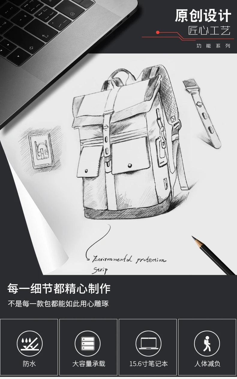 Bange Casual Men Anti Theft Backpack 15.6 inch Multifunctional Waterproof Backpacks Daily Travel Bag School Rucksack With Belt