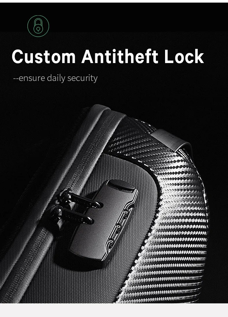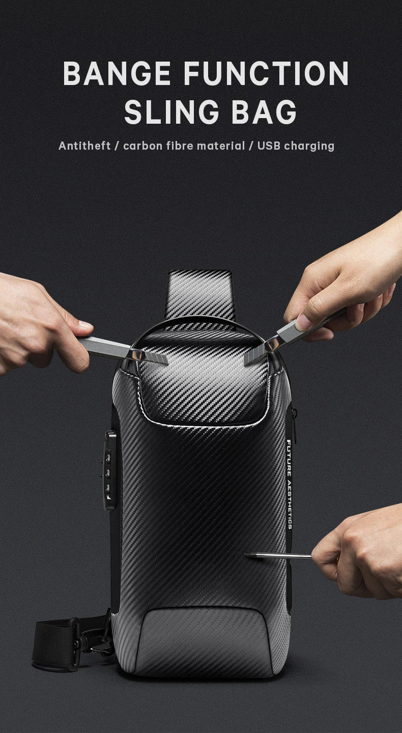 BANGE Upgraded Men Waterproof Multifunction Carbon Fiber Pattern Crossbody Bag USB Sling Shoulder Bags Messenger Chest Bag Pack